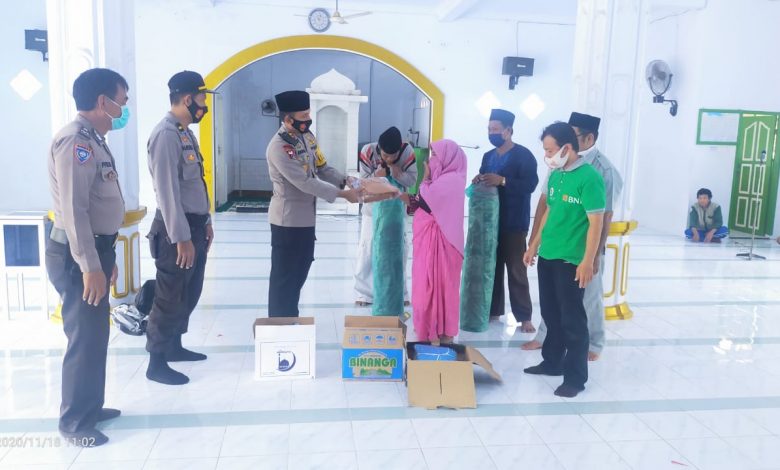 Selain Edukasi Prokes , Kapolres Majene Salurkan Bantuan Ke Masjid Baitul Wahdaniyah