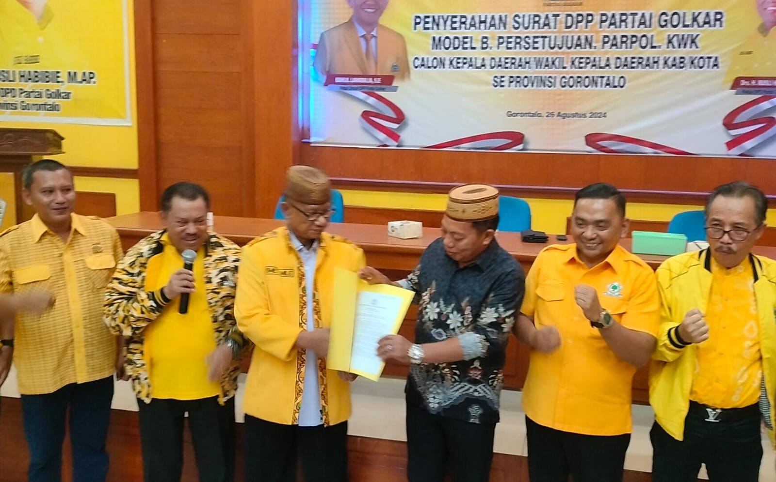 Penegasan ini disampaikan oleh Ketua DPD II Partai Golkar Kabupaten Bone Bolango Zainuddin Pedro Bau kepada media usai penyerahan Model B. Persetujuan Parpol. KWK dari Partai Golkar yang diserahkan oleh Sekretaris DPD I Partai Golkar Provinsi Gorontalo Paris RA Jusuf di Kantor DPD I Partai Golkar Gorontalo, Senin (26/8/2024).