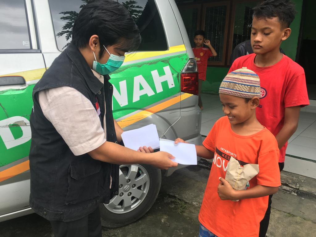 Abdi Siregar (6) salah satu penerima mengungkapkan terimakasih atas santunan yang diterimanya. “Makasih ya om,” kata Abdi dengan senyum malu.
