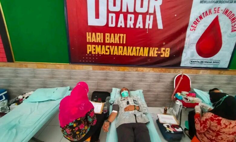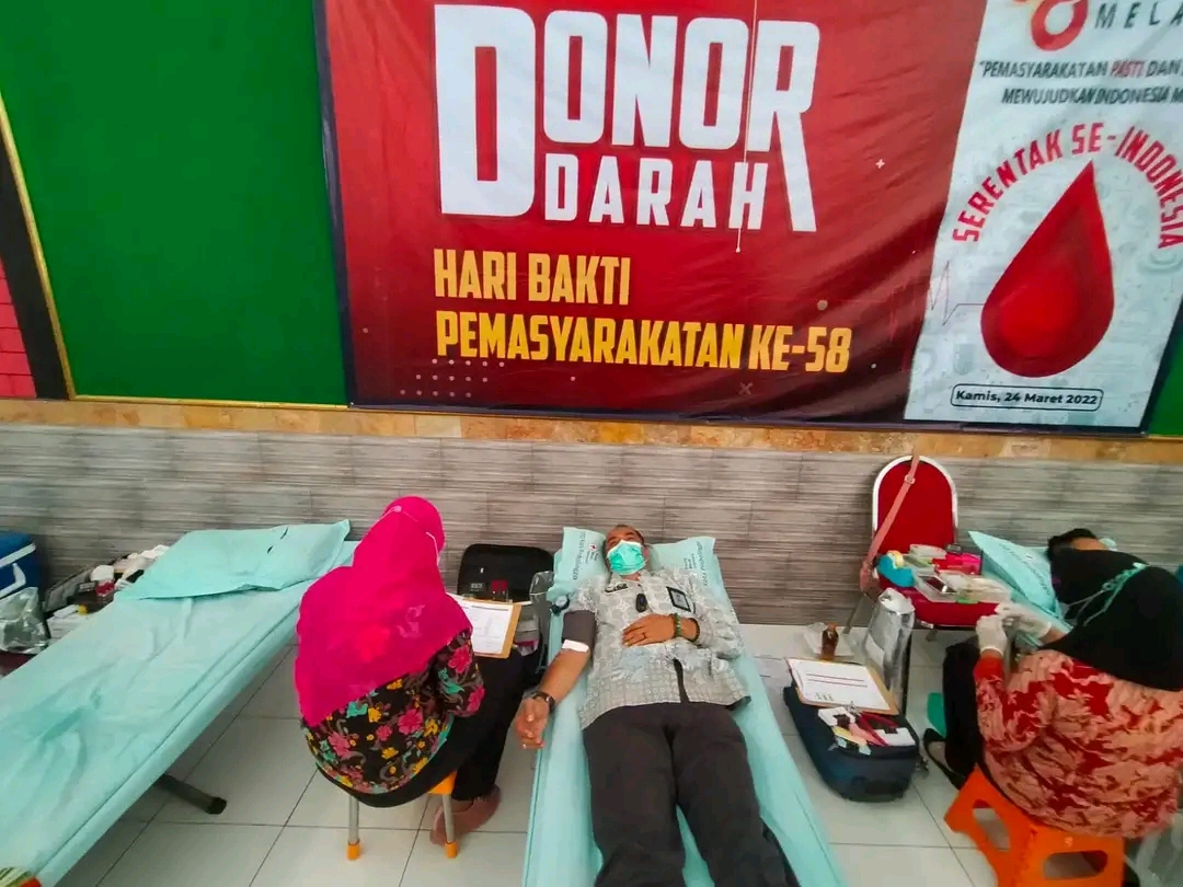 Kegiatan donor darah yang digelar secara serentak hari ini oleh seluruh satker Pemasyarakatan se-Indonesia ini sesuai dengan panduan peringatan Hari Bakti Pemasyarakatan Ke-58 tahun 2022.