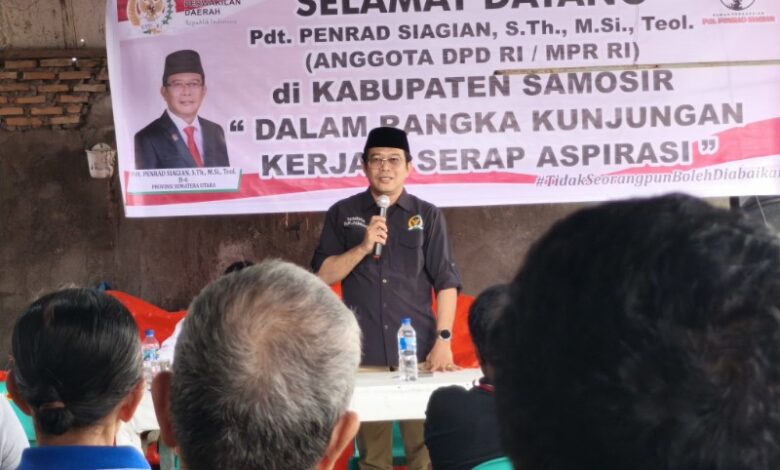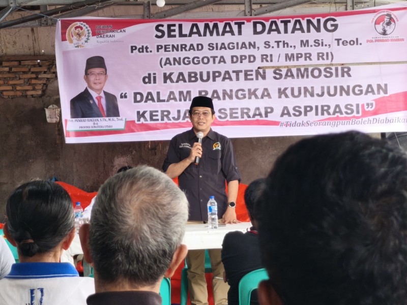 BeritaNasional.ID SAMOSIR, SUMUT   — Anggota DPD RI Pdt. Penrad Siagian menemui masyarakat Samosir pengguna dan pengelola tanah eks Belanda atau Gemeente di Sekretariat Forum Komunikasi Masyarakat Tanah Eks Penguasaan Belanda Kecamatan Pangururan, Sabtu, 18 Oktober 2025.