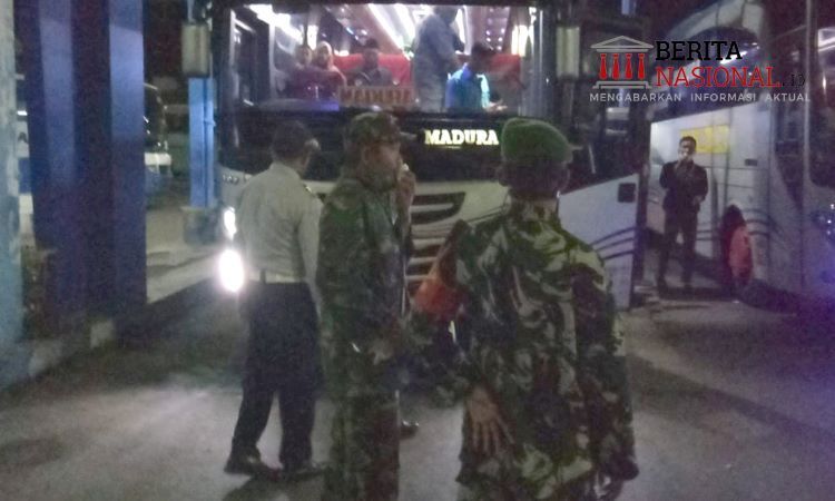 BeritaNasional.ID – SITUBONDO – Anggota Koramil 0823/02 Panji Pelda Fajar Dwi Budicahyono bersama petugas Dinas Perhubungan melaksanakan penegakan disiplin protokol kesehatan Covid-19 di terminal Situbondo, Minggu (30/05/2021).