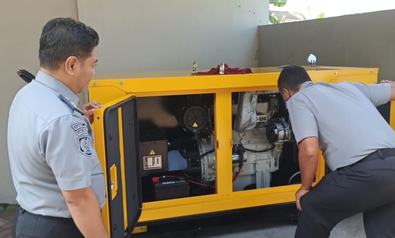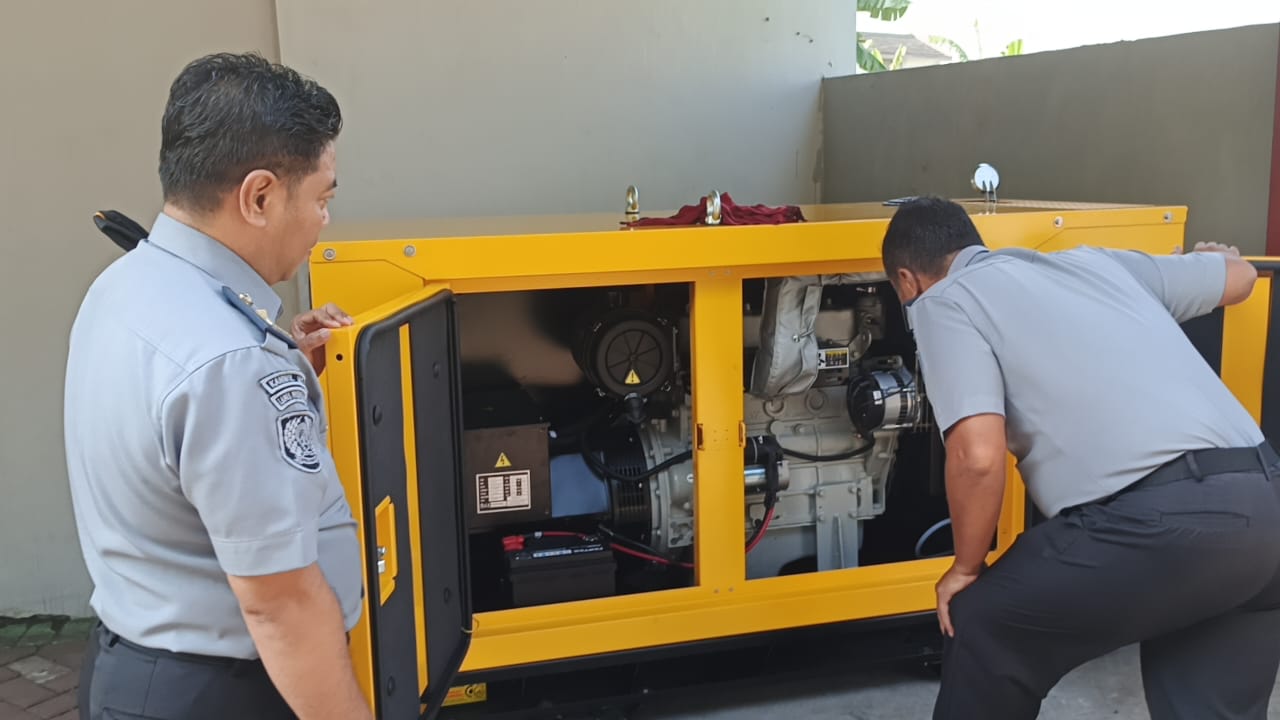 Kepala rupbasan mengecek kondisi genset yang baru beberapa minggu dipasang, genset tersebut adalah droping pengadaan APBN dari Direktorat Jenderal pemasyarakatan Tahun anggaran 2024.