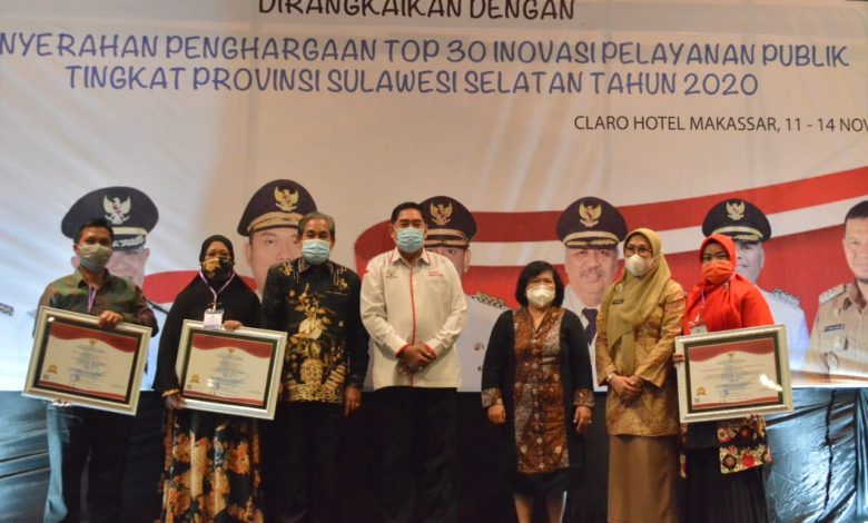 BeritaNasional.ID, Sidrap – Pemerintah Kabupaten Sidrap meraih penghargaan Top 30 Inovasi Pelayanan Publik tingkat Provinsi Sulsel Tahun 2020 di Ball Room Hotel Claro Makassar, Kamis 12 November 2020.