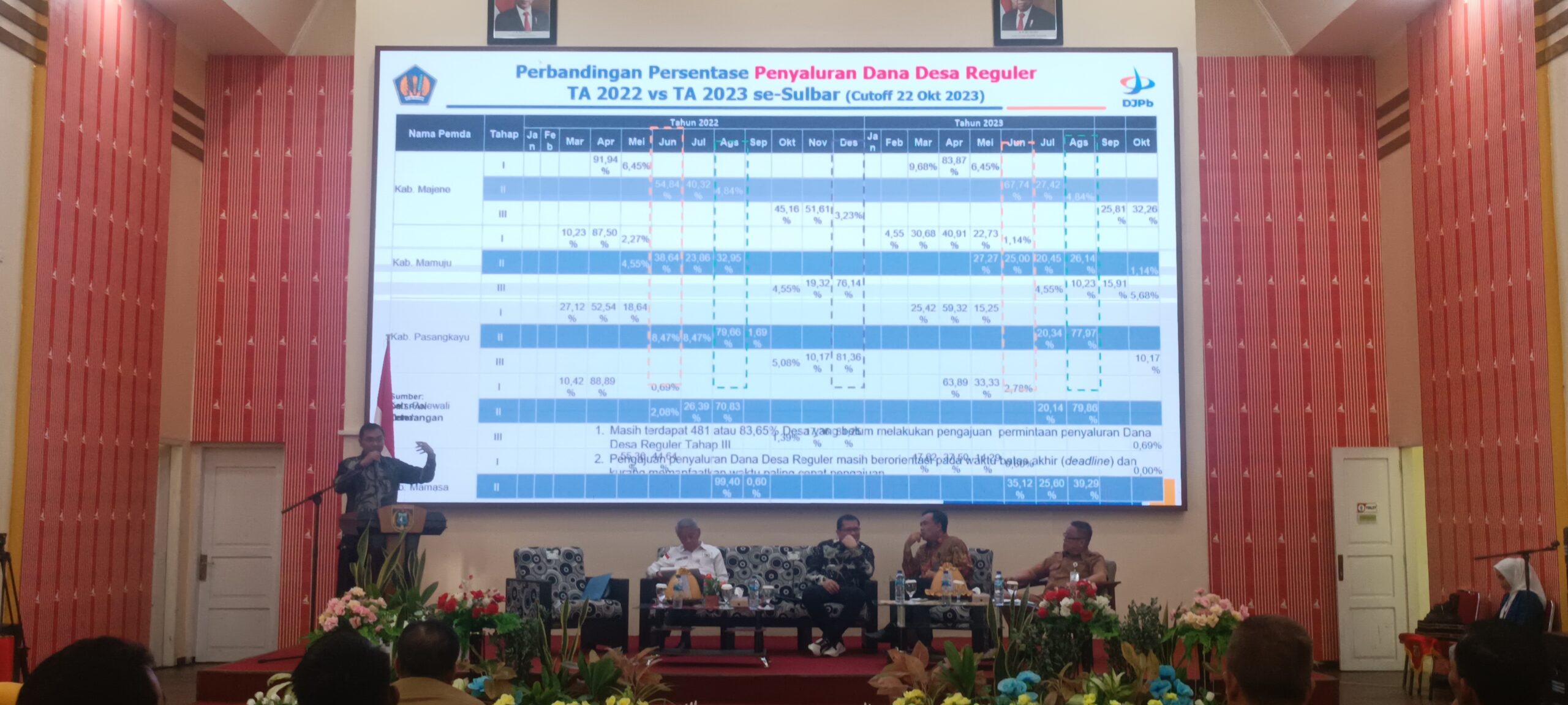 Selaku Kepala Perwakilan BPKP Sulawesi Barat, Harry Bowo dalam paparannya menyampaikan bahwa berdasarkan data hasil pengawasan tahun 2023, Dana Desa merupakan sumber pendapatan terbesar di desa mencapai 66,88% Sedangkan proporsi PADes terhadap total pendapatan desa hanya sebesar 0,02% Rendahnya PADes menggambarkan belum optimalnya desa dalam menggali sumber pendapatannya sendiri (kemandirian desa) berdasarkan potensi atau produk unggulan di desa.”ungkap Harry Bowo”.
