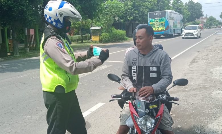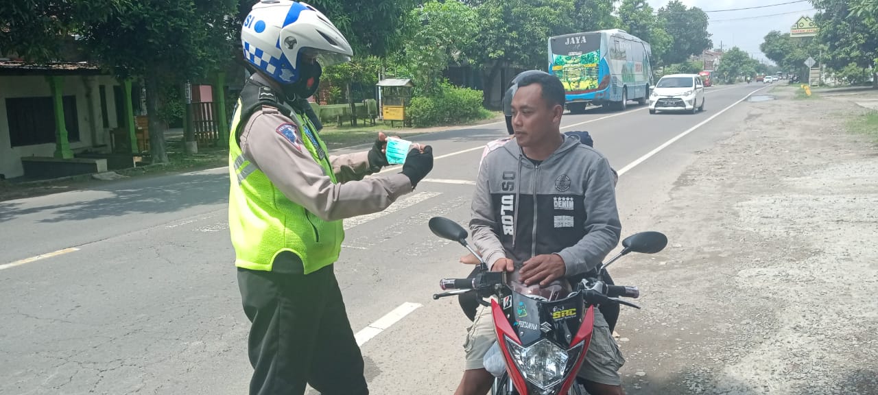 Sosialisasikan 3M, Satlantas Polres Madiun Bagikan Masker Kepada Masyarakat