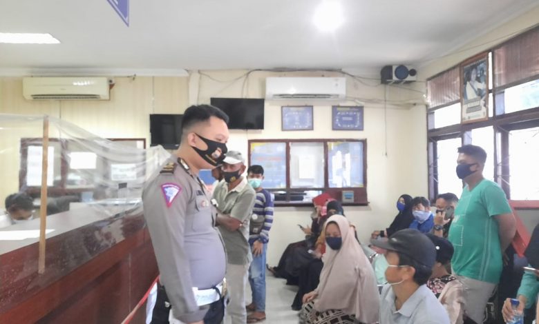 Sosialisasikan Protokol Kesehatan, Unit Regident Samsat Satlantas Polres Wajo Giat Pelayanan