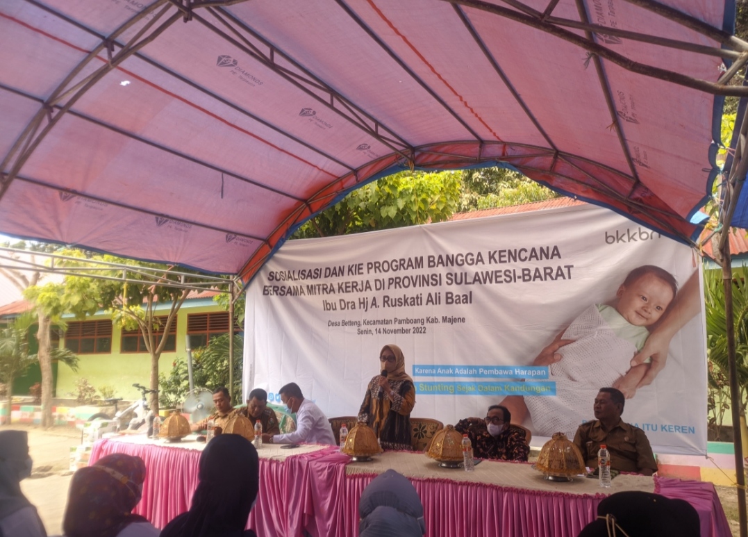 Ghalil dalam penyampaiannya mengatakan , Sosialisasi yang dilaksanakan oleh H.A.Ruskati Ali Baal yang akrab disapa Puang Bau , memilih desa Betteng Kec Pamboang Majene karena , Betteng angka stuntingnya cukup tinggi . Jelas Ghali .