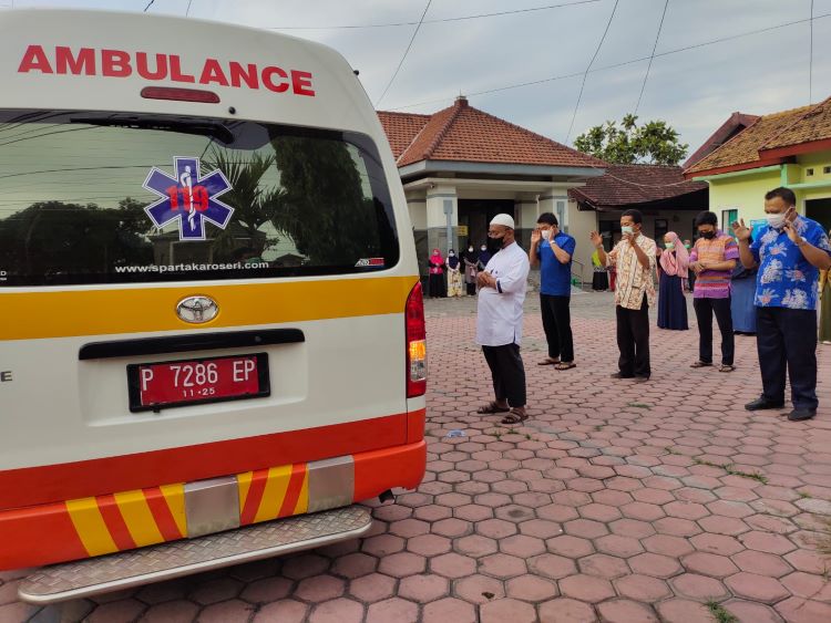BeritaNasional.ID-SITUBONDO JAWA TIMUR,- Suasana haru menyelimuti jenazah bidan Sri Wahyuni saat tiba di Puskesmas Panarukan, untuk disalatkan. Sri Wahyuni meninggal dunia setelah berjuang melawan Covid-19 dan melahirkan bayinya, Kamis (15/7/2021).