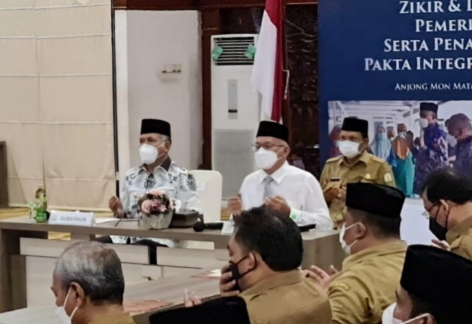 Apresiasi itu disampaikan Gubernur saat memberikan arahan kepada para peserta zikir dan doa bersama yang diikuti secara virtual oleh seluruh SMA, SMK dan SLB serta para Aparatur Sipil Pemerintah Aceh, Selasa 30 November 2021.