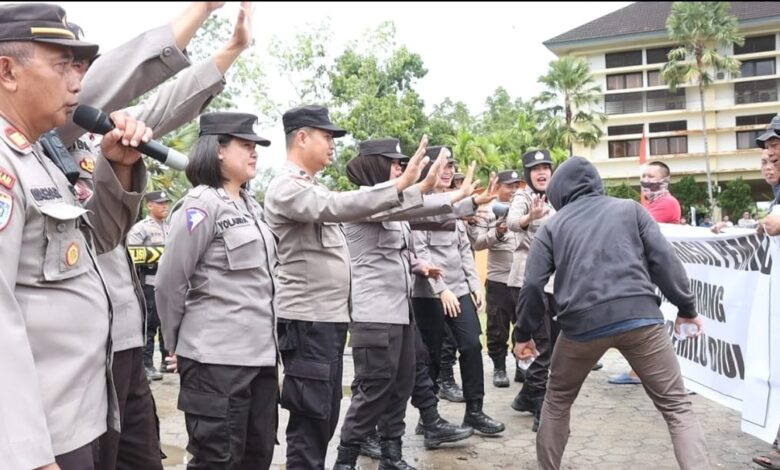 “Point penting yang diperhatikan dari simulasi ini adalah antisipasi kerawanan akan terjadinya kericuhan saat Pemilu nanti. Hal ini dapat terlihat dengan kemungkinan adanya aksi unjuk rasa sebagai bentuk ketidakpuasan terhadap hasil Pemilu, bisa juga karena ketegangan antar massa pendukung paslon yang tidak dapat mengontrol diri,” jelas Kapolres.