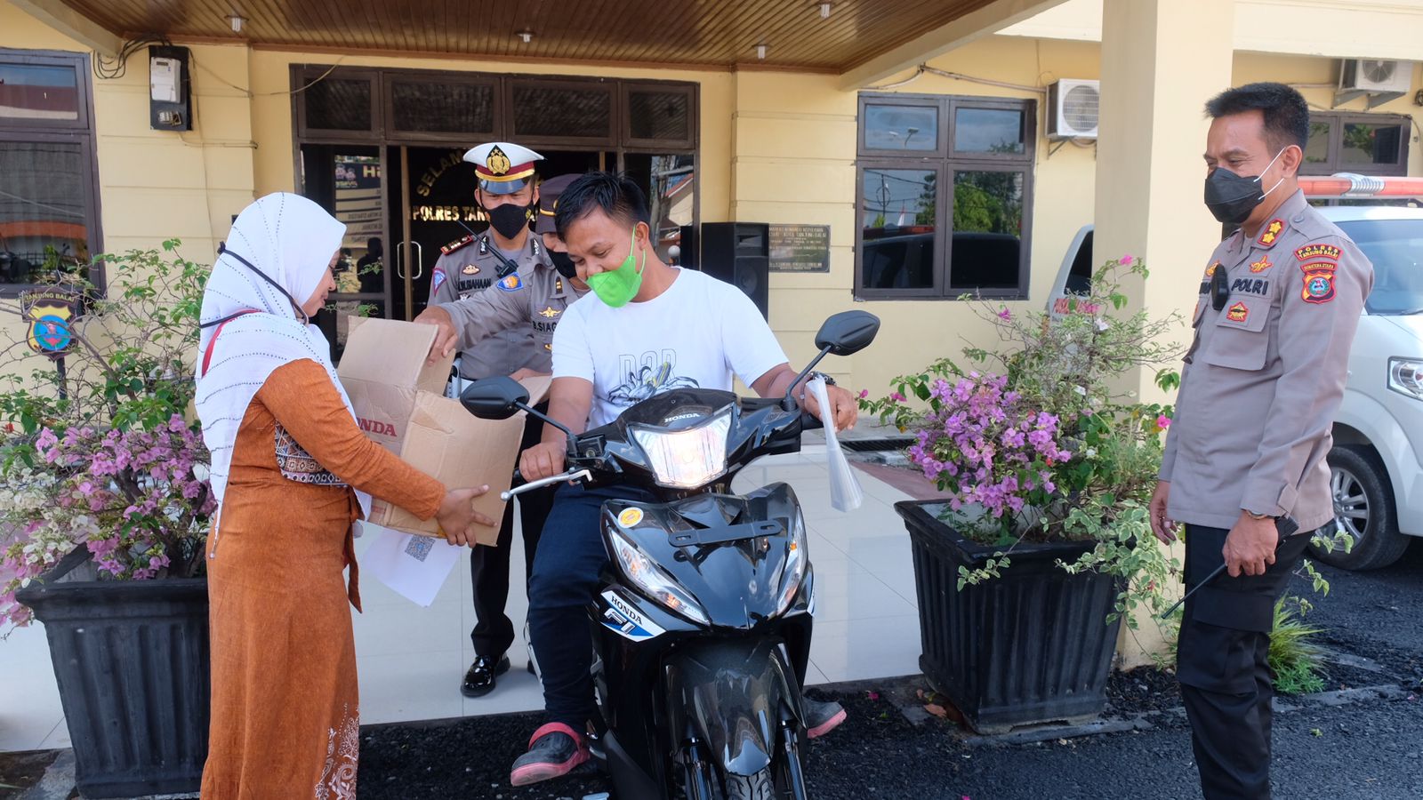 BeritaNasional.ID-TANJUNGBALAI SUMUT Didepan lobi utama Polres Tanjungbalai, Kapolres Tanjungbalai AKBP Triyadi SH, SIK menyerahkan hadiah utama dari Vaksinasi Akabri 2001 dengan hadiah satu unit Sepeda Motor yang dilaksanakan pada Selasa 14/12/21.