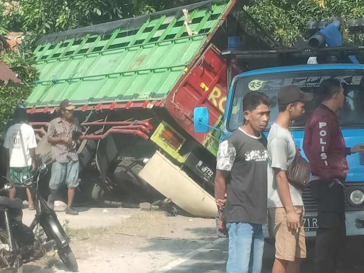 Menurut Kasat Lantas, kecalakaan tersebut terjadi akibat pengemudi truk tidak memperhatikan kendaran dari arah yang berlawanan ketika mendahului kendaraan yang ada di depannya. “Ketika pemgudi truk mau mendahului kendaraan lain, dari arah yang berlawan ada sepeda motor, sehingga tabarkan tidak dapat dihindari,” ujarnya.