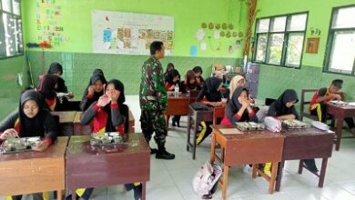 Babinsa Tangsel Wetan, Serma Dwi Joko Prianto memantau langsung MBG di Kelas VIII D (Syamsul Arifin/BeritaNasional.ID) Sejak Agustus 2025, Ratusan Siswa MTsN 1 Bondowoso Dapat MBG