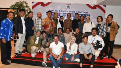 Prof Zudan mantan Pj Gubernur Sulbar (tengah banu batik) bersama kabid Kominfo Dian Afrianty (baju Putih) bersama oara awak media Mamuju Sulbar .(foto frd) Sedih Meninggalkan Sulbar, Prof Zudan Anggap Masyarakat Sulbar Adalah Keluarga Besar