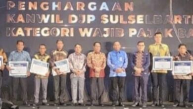 Aji Assul saat menerima penghargaan dari Kantor Wilayah Direktorat Jenderal Pajak (DJP) Sulawesi Selatan, Sulawesi Barat dan Sulawesi Tenggara , sebagai pembayar pajak terbaik " PT. Bumi Surya Selaras (BSS).(foto ist/yn) BBS Milik Aji Assul Raih Penghargaan Pembayaran Pajak Terbaik
