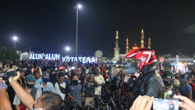 Dengan menggunakan motor, Walikota Tegal Dedy Yon Supriyono melakukan monitoring di Alun - Alun Kota Tegal (Foto:Dok) Walikota Bersama Kapolres Tegal Kota Lakukan Monitoring Malam Hari Guna Penegakan Protokol Kesehatan