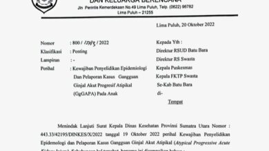 Surat pemberitahuan penyelidikan Epidemologi kasus GGAPA, Dinkes P2KB terhadap RSUD, Puskesmas, dan RS Swasta se-Kabupaten Batu Bara. (FTR-BB/01) Kasus Gagal Ginjal Pada Anak Kewaspadaan Dini Pemkab Batu Bara Tahapan pra RS