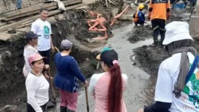 Ketua dan Pengurus DPAC PKB Bondowoso usai menyalurkan bansos langsung ikut bersih-bersih sisa lumpur (Samsul Arifin/BeritaNasional.id) Ketua dan Pengurus DPAC PKB Kota Bondowoso Salurkan Bansos Untuk Warga Sempol