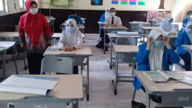 Baju Merah Kepala Sekolah SMPN 1 Situbondo saat mengkontrol siswanya belajar tatap mu hari ke Tiga (Heru Hartanto) PTM di SMPN 1 Situbondo Lakukan Prokes COVID-19 Super Ketat