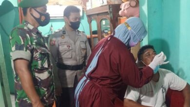 Anggota Koramil dan anggota Polsek Jangkar saat dampingi Nakes PKM Jangkar melakukan Swab (Heru Hartanto/BeritaNasional.id) Putus Penyebaran Covid-19, PKM Jangkar Bersama TNI dan Polri Lakukan Swab Kontak Erat Pasien Covid-19