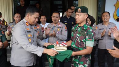 Kapolres mendapat surprise dari TNI pada hari Bhayangkara ke 77 (Syamsul Arifin/Berita Nasional.ID) Subden POM dan Batalyon 514 Raider Bondowoso Semarakkan HUT Bhayangkara ke 77