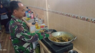 Babinsa Ju menampilkan kebolehannya memsak di dapur Panti Anak Yatim (Zainul Muhaimin/Berita Nasional.ID) Babinsa Bantu Masak Panti Anak Yatim Persiapkan Buka Puasa
