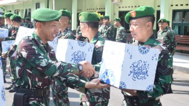 Prajurit 0822 sumringah usai menerima bingkisan (Zainul Muhaimin/Berita Nasional.ID) Menjelang Hari Raya Idul Fitri, Dandim Beri Bingkisan Prajuritnya