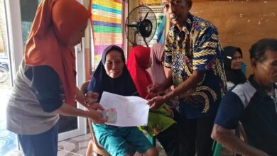 Petugas Pekon Mulyorejo menyerahkan Bantuan Langsung Tunai Dana Desa (BLT DD) tahun 2026 secara langsung kepada salah satu warga lanjut usia di balai pekon. Penyaluran dilakukan secara tertib dengan verifikasi data penerima, sebagai bagian dari upaya memastikan bantuan tepat sasaran bagi masyarakat miskin ekstrem. (Ist) BLT Dana Desa 2026 Pekon Mulyorejo Cair: 9 KK Terima Rp300 Ribu per Bulan