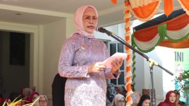 Bupati Bone Bolango Merlan S. Uloli saat memberikan sambutan pada peringatan Hari Kartini di Bone Bolango (foto: Prokopim) Peringatan Hari Kartini di Bone Bolango, Merlan: Perempuan Jangan Dianggap Remeh