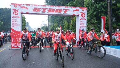 Meriahkan HUT RI ke 78, Bupati Asahan H. Surya Bsc mengikuti kegiatan fun bike bersama Forkopimda dan masyarakat.(dok:Ist) Bupati dan Forkopimda Asahan Ikut Fun Bike Bersama Masyarakat