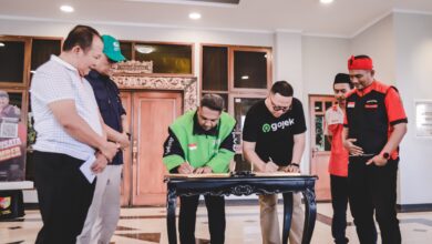Penandatanganan Kerja Sama (PKS) antara perwakilan PT Gojek Tokopedia dan perwakilan Koperasi Giat Bersama Sejahtera digelar Pendapa Wahyawibawagraha, disaksikan Bupati Hendy Siswanto. (AAR/Berita Nasional.ID) 6 Tahun Berkoflik, Kini Ojol dan Opang di Jember Bersatu, Bupati Hendy Beri Apresiasi
