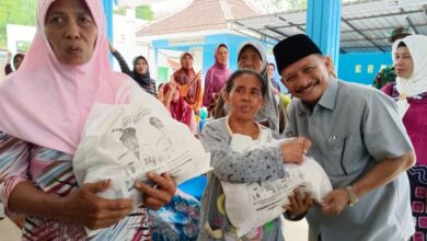 Bupati Situbondo menyerahkan paket sembako kepada masyarakat kurang mampu di Desa Kotakan (Heru Hartanto/BeritaNasional.ID) Ramadhan Bersama Rakyat, Bupati dan Wakil Bupati Situbondo Blusukan Bagikan Paket Sembako dari Plosok Desa Hingga ke Sudut Kota