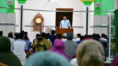 Bupati ASA saat melaksanakan safari Ramadan di Masjid Al Jazairiyah Kambuno, Desa Pulau Harapan, Kecamatan Pulau Sembilan. Pasca Dilalap Si Jago Merah, Bupati ASA: Puskesmas Pulau Sembilan Siap Dibangun Kembali