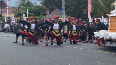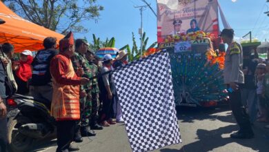 Jamak Nurwanto Camat Padang saat berangkatkan peserta pawai karnaval (foto:Rochim/BeritaNasional.ID) Pawai Karnaval Kecamatan Padang Lestarikan Budaya Tradisional Dalam Rangka HUT RI Ke 78