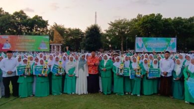 Bupati, Ketua PKK, Ketua DPRD, Sekda foto bersama dengan peserta Apel Akbar Fatayat NU (Heru Hartanto/BeritaNasional.ID) Harlah ke-75, Fatayat NU Situbondo Gelar Apel Akbar dan Parade Hadrah