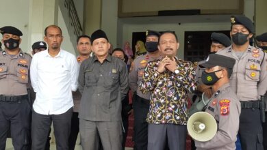 Wakil Ketua DPRK Aceh Tamiang, Fadlon dan Ketua Komisi 4, Miswanto berdialog langsung dengan eks karyawan PT Semadam yang melakukan aksi demo terkait pesangon yang belum diterimanya,Selasa (18/7). [] SUPARMIN/beritanasional.id Unjukrasa Eks Karyawan PT Semadam, Segenap Anggota Komisi 4 DPRK Aceh Tamiang Tak Hadir