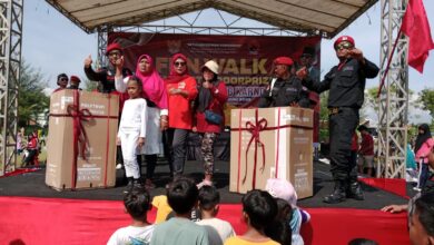 Warga Kabupaten Probolinggo melakukan senam dan jalan sehat bersama PDIP.(Yuliono/BeritaNasional.ID) DPC PDIP Kabupaten Probolinggo Rayakan Bulan Bung Karno, Dimeriahkan Jalan Sehat dan Doorprize