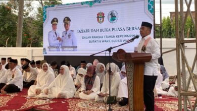 Bupati Wajo Andi Rosman didampingi jajaran Forkopimda saat memberikan sambutan dalam peringatan satu tahun kepemimpinan Ar-Rahman di Rujab Veteran, Jumat (30/2/2026). (Hms) Satu Tahun Andi Rosman–dr Baso Pimpin Wajo, Infrastruktur Digenjot dan Ekonomi Didorong Tumbuh