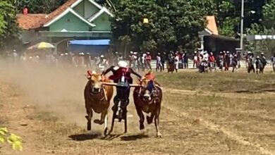 Salah satu peserta kerapan sapi desa Jatirejo (foto:Rochim/BeritaNasional.ID) Festival HUT RI Ke 79 Desa Jatirejo Meriahkan Dengan Kerapan Sapi Kades Cup