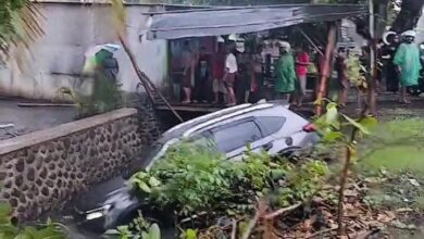 Kurang Konsentrasi Saat Nyetir Mobil BRV Terjun ke Sungai.(Yuliono/BeritaNasional.ID) Gegara Hilang Konsentrasi, Mobil Oleng Nyemplung ke Sungai di Probolinggo