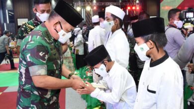 Komandan Korem 011 Lilawangsa Kolonel Inf Bayu Permana menyerahakan Trophy Piala Kasad Liga Santri PSSI 2022 Regional Korem 011 Lilawangsa, Rabu 10 Agustus 2022. (Foto : Firman Fadhil) Danrem Bayu Permana Serahkan Trophy Piala Kasad Kepada Tim Al Azhar FC