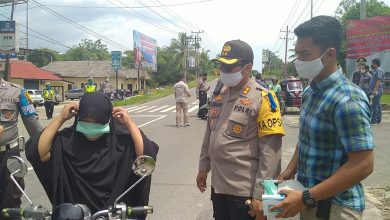 Polwan Sat Lantas Polres Madina Bagikan Masker Dan Nasi Bungkus Kepada Warga