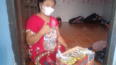 Anik, warga Gang Merpati No 016, RT 023 / RW 08 Sangatta Utara mendapat bantuan sembako dari Lia Studio(Oyek/BeritaNasional.ID) Banjir Sangatta Mulai Surut, Bantuan Sembako Bagi Warga Terdampak Mulai Berdatangan
