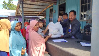 Agus Lahama, Ketua RT 31, Dusun ll, Singa Karti, Desa Sangatta Utara, membagikan bantuan paket sembako kepada warga(Sony Haryono/BeritaNasional.ID.) Dinas Sosial Melalui Ketua RT 31 Membangikan 151 Bantuan Sembako Dampak Banjir Sangatta