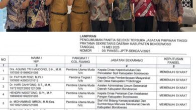 BeritaNasional.ID, BONDOWOSO JATIM – Setelah memenuhi syarat administrasi, 8 orang yang mengikuti seleksi terbuka calon Pimpinan Tinggi Prtama Sekretaris Daerah…