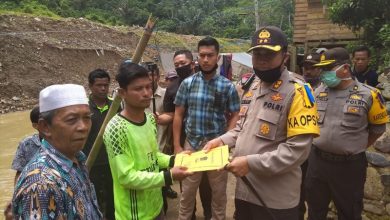 Kapolres Madina Berikan Santunan dan Sembako Kepada Dua Keluarga Korban Banjir di Desa Tanjung Medan