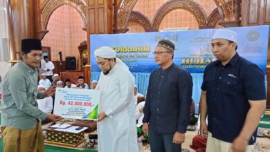 KHR Achmad Azaim Ibrahimy pengasuh Pondok Pesantren Salafiyah Safi’iyah Sukorejo bersama Kepala BPJS Ketenagakerjaan saat menyerahkan santunan kepada ahli waris Almarhum Abdul Wafi (Heru Hartanto/BeritaNasional.ID) BPJS Ketenagakerjaan Situbondo, Salurkan Santunan Kematian Kepada Ahli Waris Almarhum Abdul Wafi