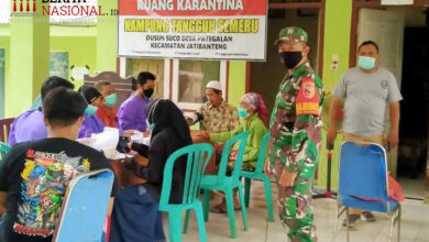 Babinsa Koramil 0823/16 Jatibanteng saat melakukan pemantauan vaksinasi Covid-19 (Heru/BeritaNasional.ID) Kejar Target, Tiga Pilar Kecamatan Jatibanteng Gencar Lakukan Vaksinasi