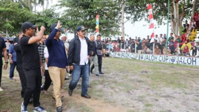 Wali Kota Batam menyapa warga yang menyaksikan penutupan turnamen sepak bola Pulau Jaloh (*) Eksekusi Langsung Permintaan Warga Jaloh Untuk Perbaiki Lapangan Bola, Rudi : Pak Lurah Hitung Semua Biayanya!